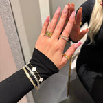 Unser White Perlmutt Clover Armband ist mit vier edlen Kleeblättern verziert, die auf der Vorderseite mit Perlmutt gefüllt sind. Das schimmernde Material reflektiert das Licht auf elegante Weise und sorgt für einen besonderen Glanz. Kombiniere es mit weiterem Clover Schmuck aus unserer Kollektion.